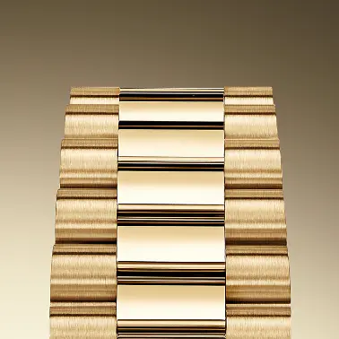 The design, development and production of Rolex bracelets and clasps, as well as the stringent tests they face, involve advanced high technology. And, as with all the components of the watch, aesthetic controls by the human eye guarantee impeccable beauty. The President bracelet, with its semi-circular three piece links, was created in 1956 for the launch of the Oyster Perpetual Day-Date. It represents the ultimate in refinement and comfort and is always made of carefully selected precious metals.