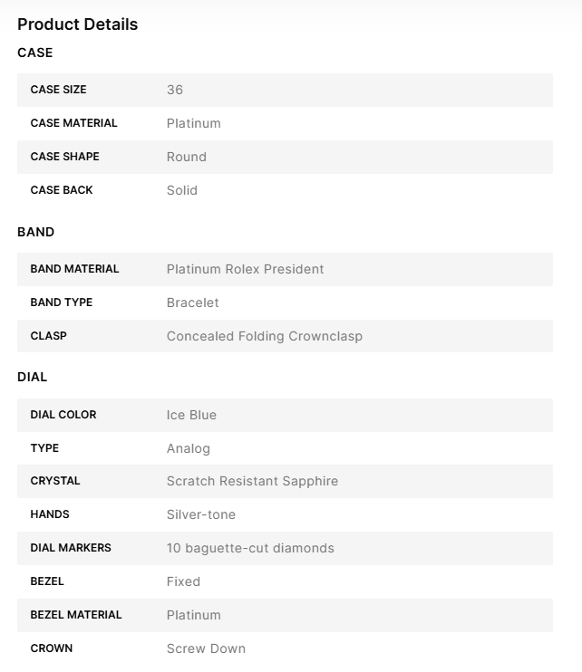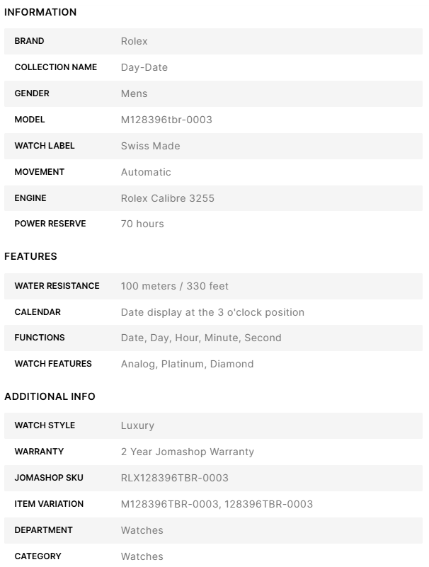 Moreover, the watch comes with a robust 2-year international warranty, ensuring peace of mind and confirming its excellent build quality. Whether you are a seasoned collector or someone looking for the perfect wristwatch to make a statement, this rolex day date platinum ice blue baguette replica will fulfill your desires. Its near-perfect mimicry of the original means even your jeweler might not distinguish it from its high-end counterpart. In every sense, the Rolex Day-Date Platinum Replica combines the aura of luxury with the reliability of top-tier craftsmanship, making it an inevitable choice for your collection.
