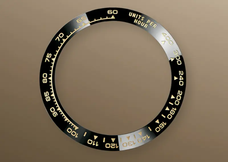 A key part of the model’s identity is the bezel moulded with a tachymetric scale for measuring average speeds of up to 400 miles or kilometres per hour. Blending high technology with sleek aesthetics, the black bezel is reminiscent of the 1965 model that was fitted with a black Plexiglas bezel insert.